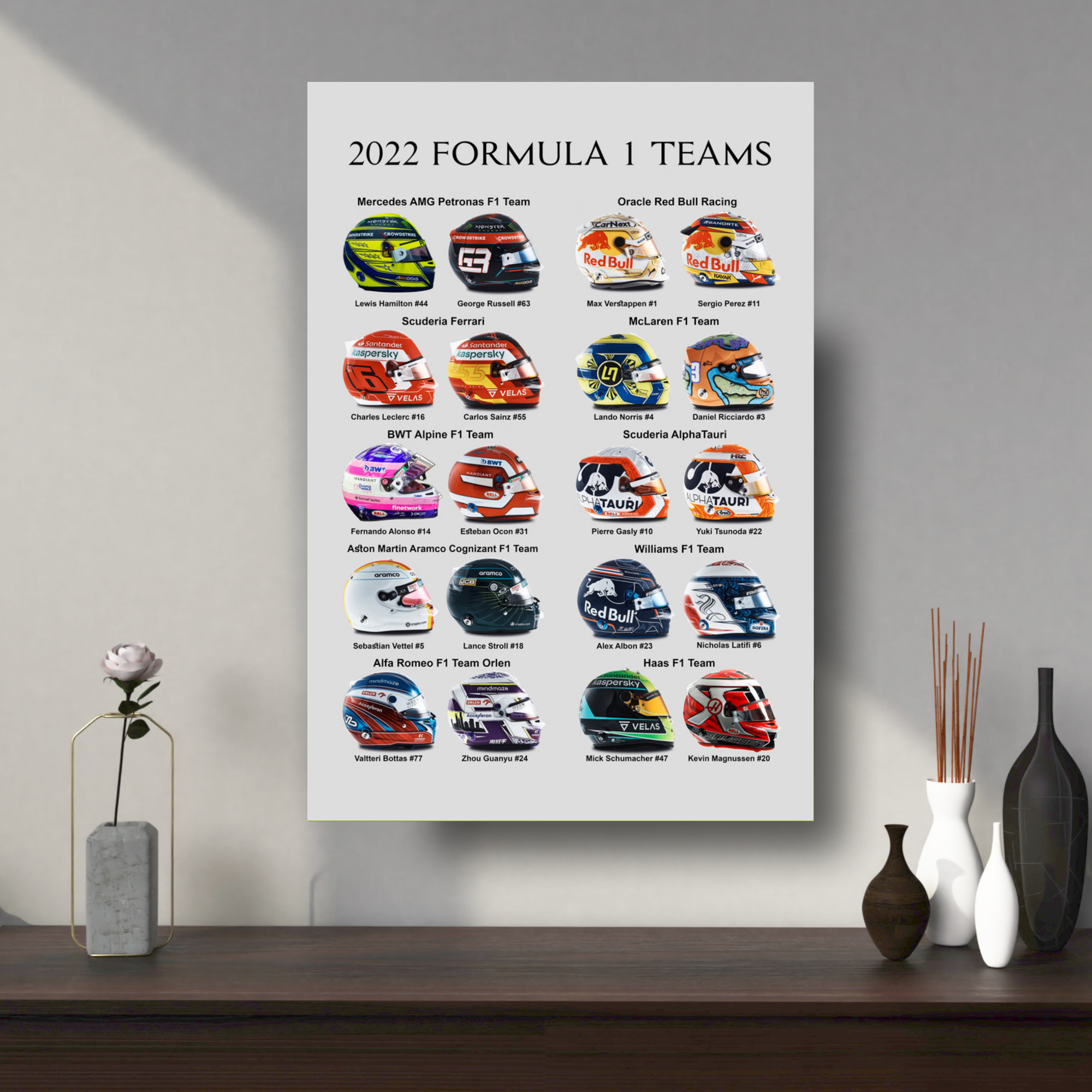 High-quality 2022 Formula 1 Teams – F1 metal poster built with premium metal.