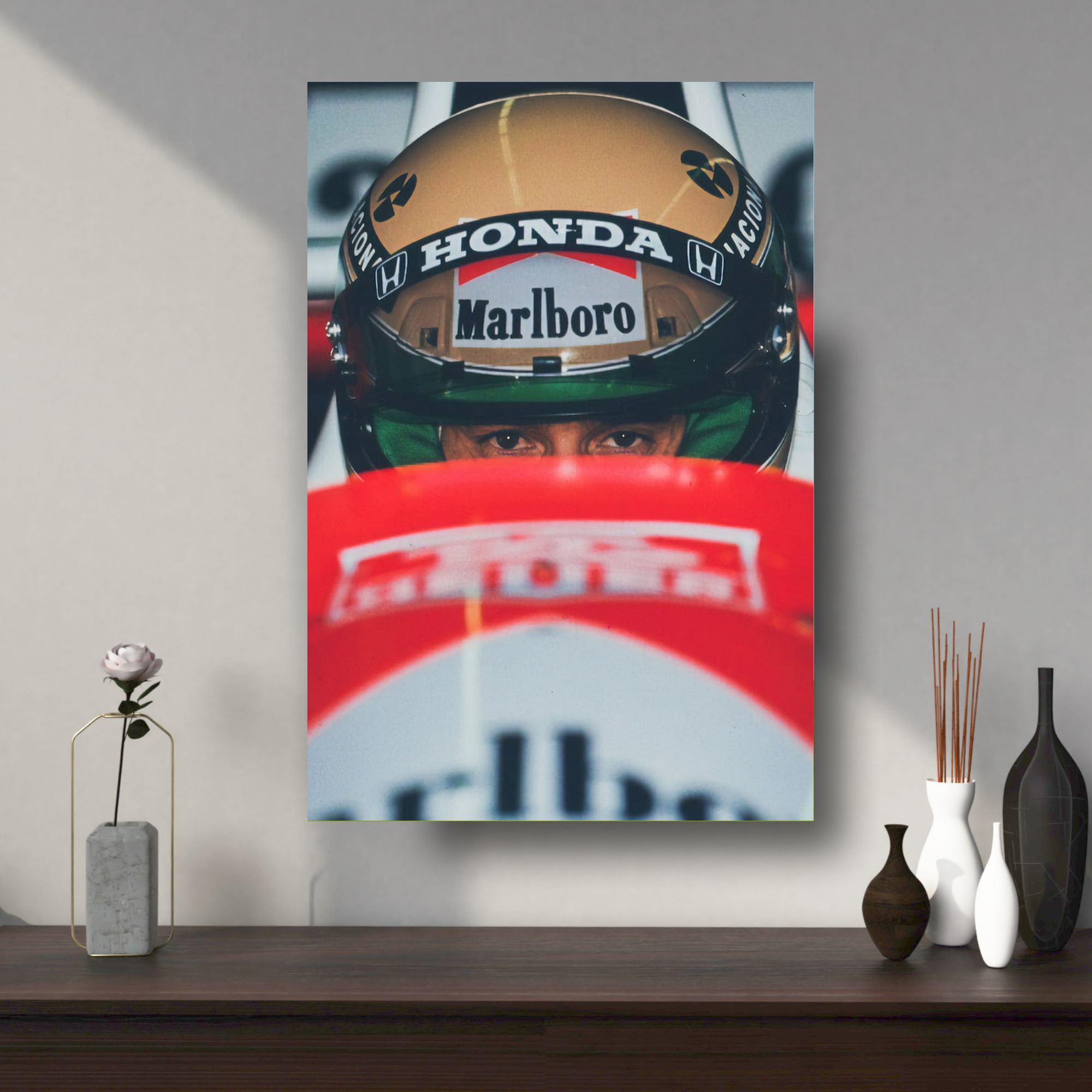 High-quality Ayrton Senna – F1 Lengend metal poster built with premium metal.