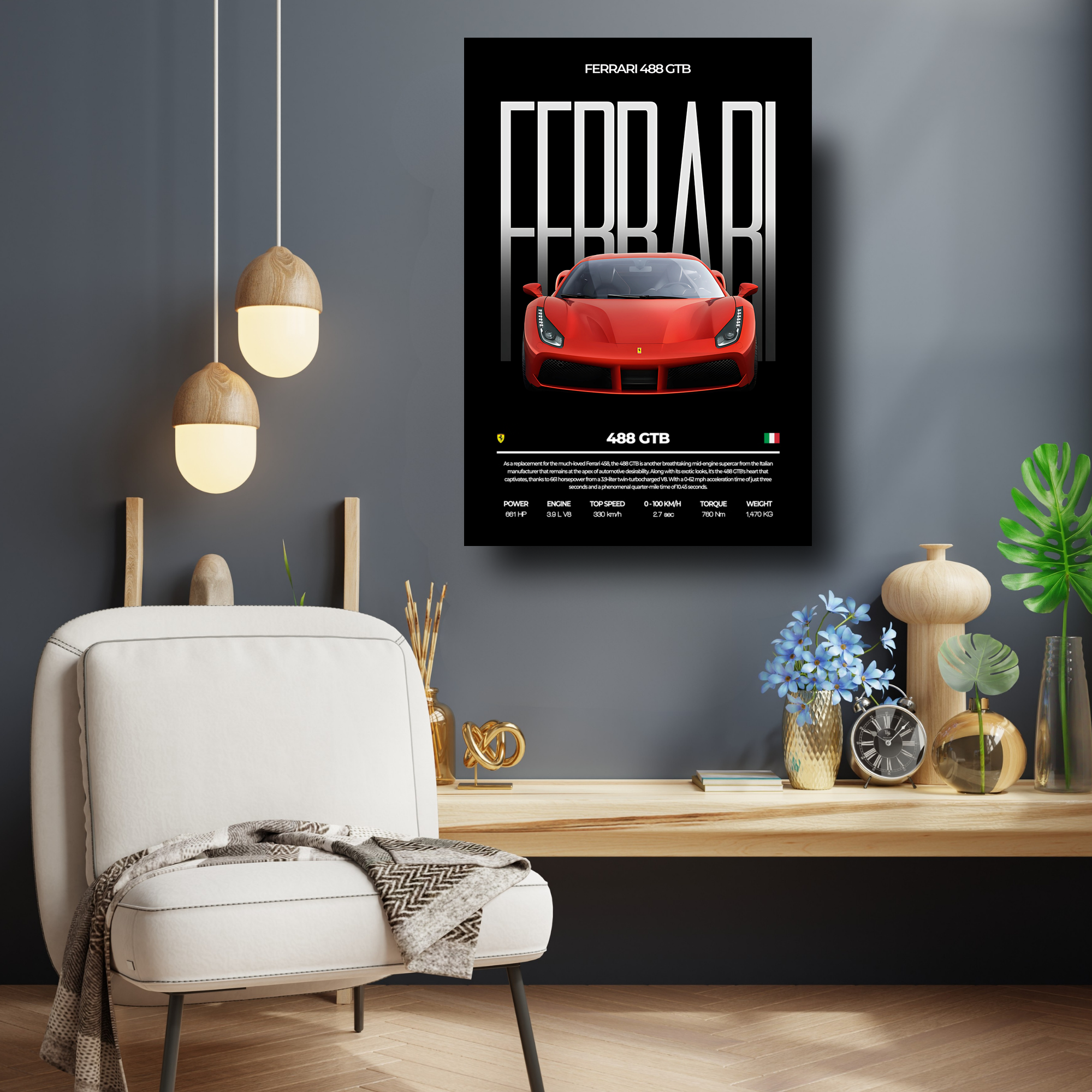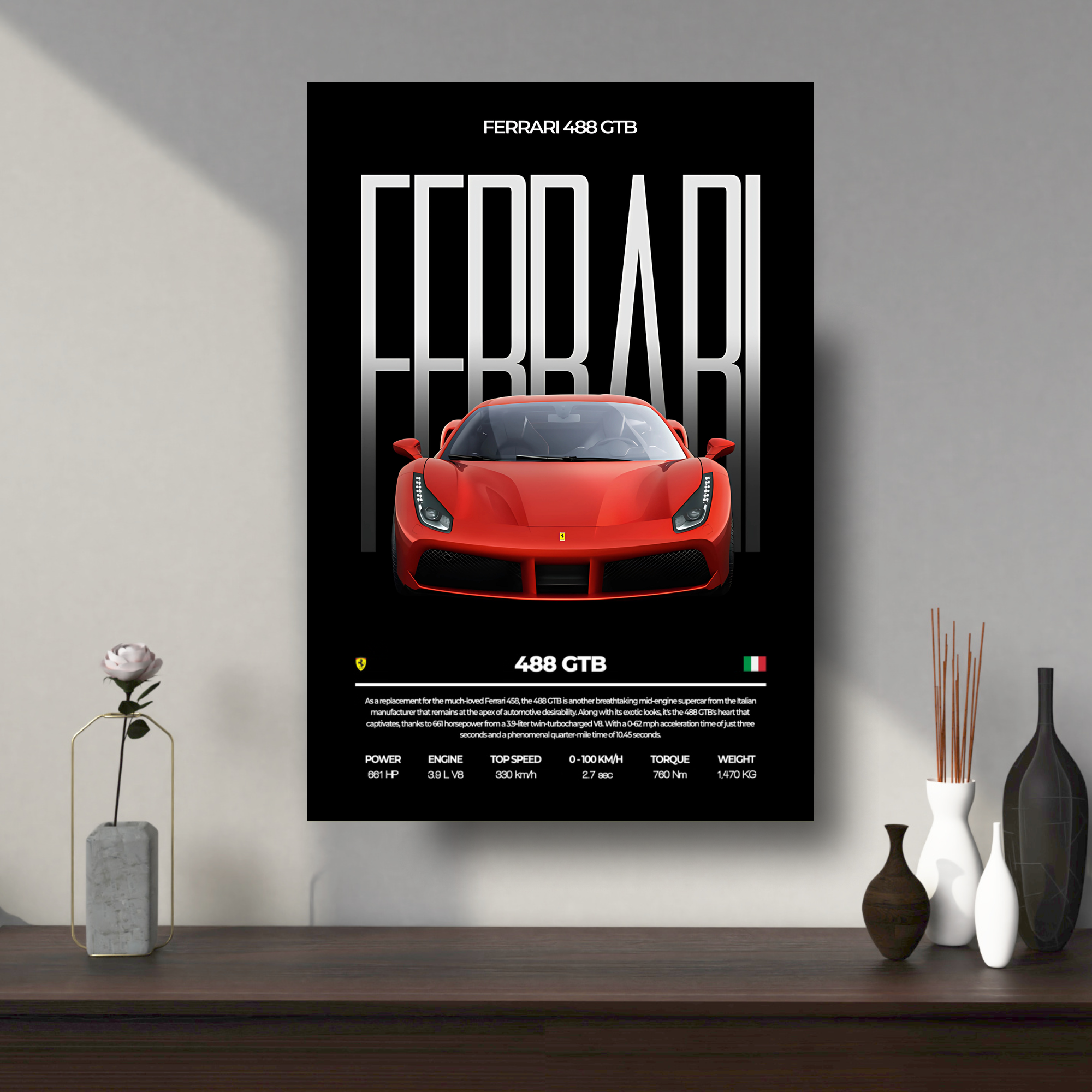 High-quality Ferrari 488 GTB metal poster built with premium metal.