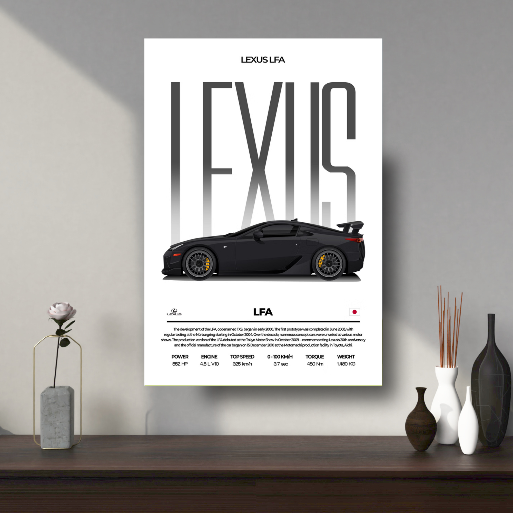 High-quality Lexus LFA metal poster built with premium metal.